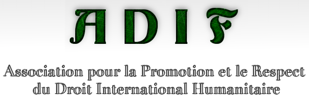 L’ADIF (Association pour la promotion et le respect du droit international humanitaire) a été créée à la suite d’une session en juillet 2002 de la Division des Droits de l’Homme de l’UNESCO. L’association souhaite contribuer à la promotion et au respect du Droit International Humanitaire (DIH), à apporter une information à un large public sur les principes fondamentaux du DIH, à dénoncer leur non-respect et à remettre en cause l’impunité dont bénéficient les responsables et dirigeants. Elle mène ainsi diverses initiatives sur les Conventions de Genève et les atteintes au DIH, telles que des conférences et des publications par pays ou par thèmes (attentats contre des civils, bombardement des populations civiles, usage d’armes nucléaires, chimiques ou bactériologiques, etc.).