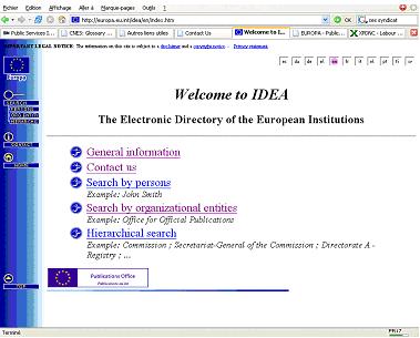 IDEA est un annuaire électronique qui présente les organigrammes des institutions, organismes et agences de l’Union européenne. IDEA permet de rechercher les entités organisationnelles (direction ou service) et les fonctionnaires de l’Union européenne.