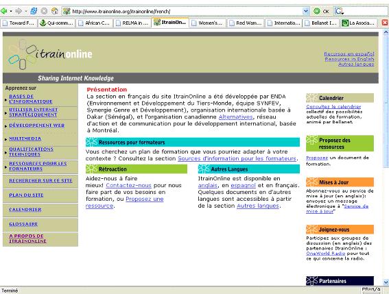 ItrainOnline is a joint initiative of seven organizations with expertise in computer and Internet training in the South. The ItrainOnline initiative aims to assist civil society organizations and other development actors in developing countries to confront the challenges posed by new information and communications technologies (ICTs).