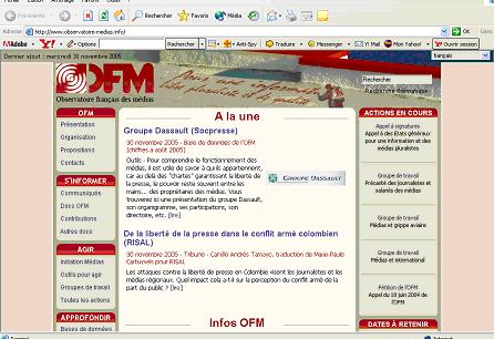 Le site de l’OFM propose une base de données sur la propriété des médias français et des médias américains, des enquêtes et une section internationale proposant des informations sur les médias aux Etats-Unis, au Venezuela, en Irak et en Espagne.