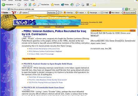 « Une autre communication est possible ». Tel est la devise de cette agence de presse indépendante créée en 1964. Mettant en avant les voix du Sud et les questions de développement, IPS anime un réseau de journalistes dans plus de 100 pays. La page Web du Service français de IPS contient des articles relatifs aux questions variées qui touchent les continents africain et latino-américains, dans les domaines des droits de l’Homme, du développement, de l’environnement, la population, la santé, l’éducation, l’économie, la politique, l’énergie et la culture. La page comprend également des liens avec deux mini-sites qui regroupent des articles relatifs à la culture, à la religion et au genre.