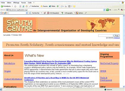 Son site propose de nombreux documents (très majoritairement en anglais) sur des sujets comme la propriété intellectuel, le commerce et le développement ou encore les institutions internationales.