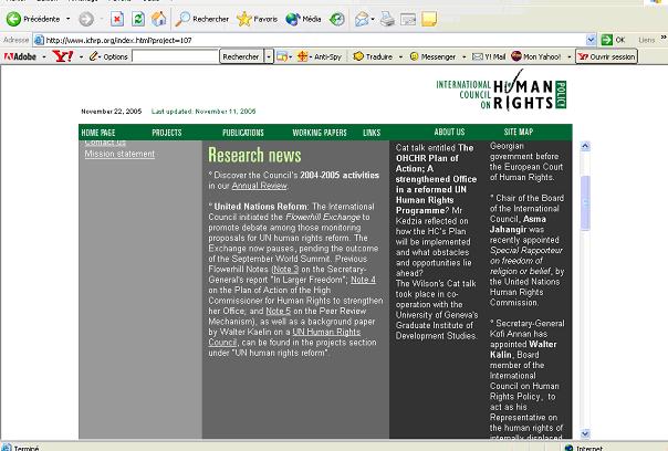 The site for ICHRP is a source for some 200 working papers available to view on line. The papers cover subjects such as the problems of accessing rights by certain peoples, decentralisation, global public goods, and more country-specific issues.