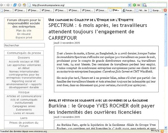 Son site propose des instruments de lutte contre les multinationales et une base de données de cas soulevés par la société civile contre des multinationales.