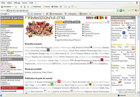 Transnationale.org étudie plus de dix mille grandes entreprises dans leur globalité : les sites de production, le croisement de leur actionnariat, les réseaux d’influence de leurs administrateurs, l’efficacité de leurs lobbies, de leurs relations publiques et de leurs « faiseurs d’opinion », les manipulations financières, les conditions de travail des employés et le respect de l’environnement.