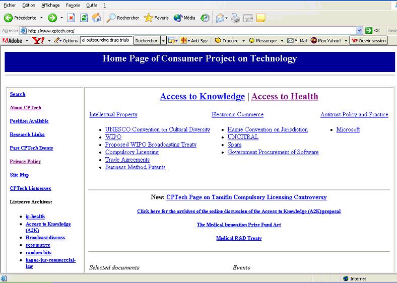 The Consumer Project on Technology (CPTech) is a non-governmental organization founded by Ralph Nader in 1995, and headed by James Love. A large part of the group’s work relates to intellectual property and international trade’s impact on access to healthcare.