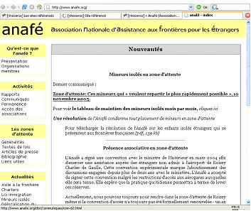 Son site offre des actualités ainsi que des dossiers sur les zones d’attente, les politiques d’asile, les projets d’externalisation et les camps de mise à l’écart des étrangers.