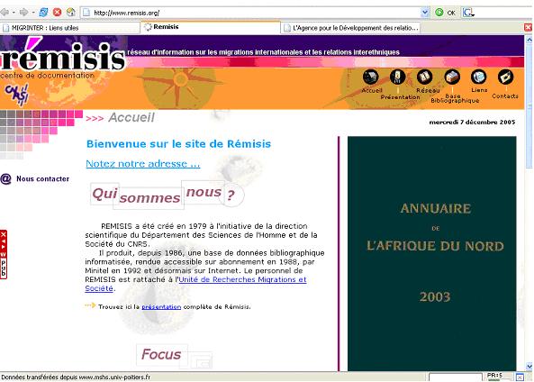 Le site propose également de nombreux liens vers des instituts de recherche, des associations, des portails, des revues et des statistiques sur les migrations.