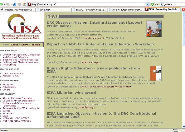 Its website provides valuable information and primary documents (official results, opinions, links, campaign issues, reports, etc.) on elections in all southern African countries.