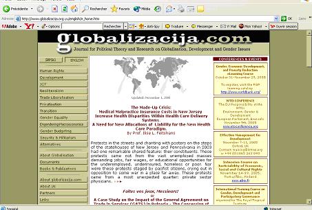 Globalizacija is a journal for political theory and research on Globalisation, Development and Gender Issues. It is produced by Women’s Centre for Democracy and Human Rights, based in Subotica, Serbia and Montenegro and founded in 2000. The centre is a nongovernmental, not-for-profit organisation and its mission is to develop democratic society, rule of law and respect for human rights through education, advocacy and research.