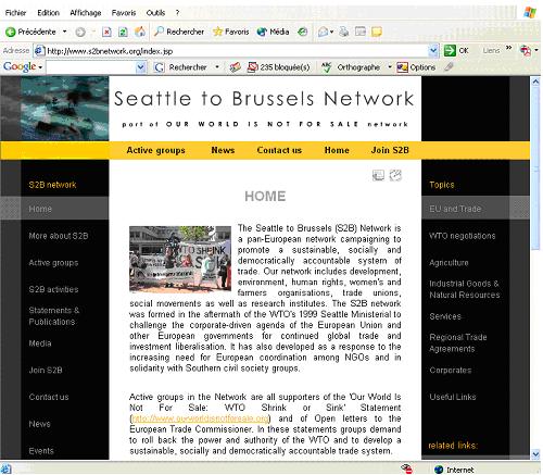 S2B was formed in 1999 and is a pan-European network which campaigns to promote a sustainable, socially and democratically accountable system of trade. The network is involved in coordinating events such as The General Council of People at Geneva in October 2005.