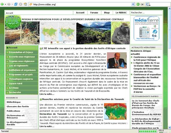 Créé en 2002, dans le cadre du projet Réseau de sites pour le développement durable (RESIDD) soutenu par le Fonds francophone des inforoutes, le portail riddac.org a pour objectif de contribuer à la diffusion, à l’échange et au partage de l’information sur les enjeux majeurs du développement durable dans les pays du Bassin du Congo, notamment la question de la conservation et de la gestion durable des forêts.
