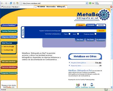 MetaBase: Bibliografía en Red es una poderosa herramienta de investigación que le permite a los usuarios finales accesar y ubicar con facilidad recursos bibliográficos disponibles en diversas bibliotecas y centros de documentación en Centroamérica.