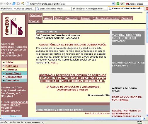 Su sitio propone noticias, comunicados, boletines, testimonios, documentos oficiales, campanas é informes. Tambien publica Yorail Maya, una revista en derechos humanos de y para las comunidades indígenas y mestizas.