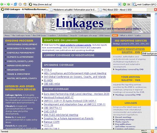 Supported by the International Institute for Sustainable Development (IISD), Linkages is a multimedia ressource for environment and development policy makers.