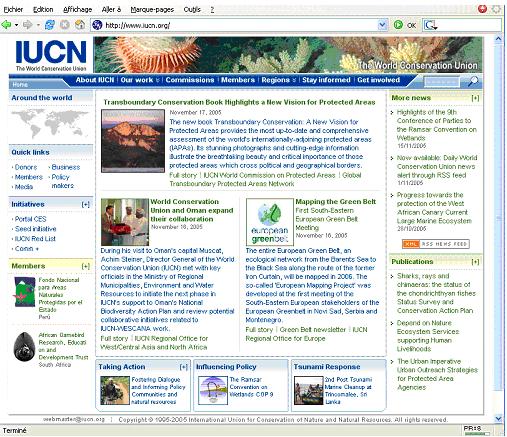 The IUCN library is a repository of publications, periodicals, scientific and technical reports prepared by IUCN, its regional and country offices, commissions and partners. The website provides also recent news stories and press releases of The World Conservation Union and its network, a calendar of main events related to conservation and sustainable development throughout the year, and data and information on the state of biodiversity and ecosystems.