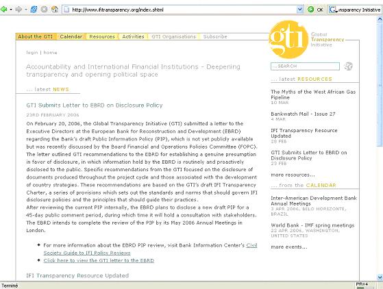 The Global Transparency Initiative (GTI) is an informal network of civil society organizations that are working together to overcome the secrecy surrounding the operations of the International Financial Institutions (IFIs).