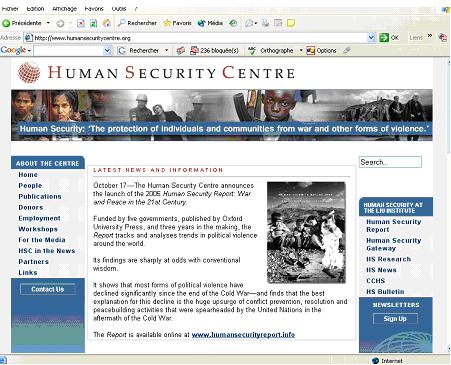 The Human Security Gateway is a research and information database regrouping electronic and bibliographic resources on human security. The Gateway is a joint initiative of the Human Security Centre and the Canadian Consortium on Human Security, both located at the University of British Columbia.