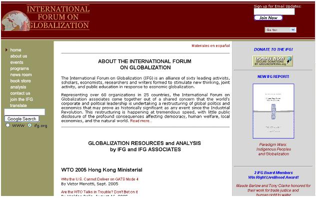 Son site (en anglais) propose de nombreux contenus sur les différentes problématiques relevant de la mondialisation, comme la santé, la protection de l’environnement, la justice économique et la gouvernance démocratique.