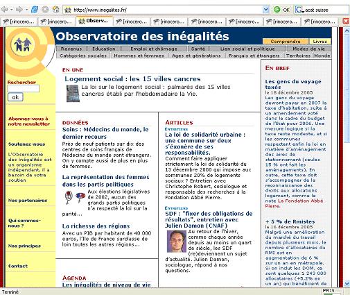 En plus d’une rubrique consacrée à la question des inégalités (« Qu’est-ce qu’une inégalité ? Quelles formes peut-elle prendre ? Comment se constituent et se reproduisent-elles ? Comment les combattre ? »), le site de l’Observatoire propose de nombreux articles et données sur des sujets comme les revenus, l’éducation, l’emploi et le chômage, la santé, le lien social et politique, les modes de vie ou encore les catégories sociales, à l’échelle française, européenne et mondiale.