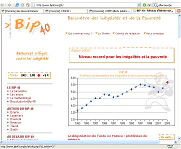 Mis en place par le RAI (Réseau d’alerte sur les inégalités), le BIP40 est un baromètre construit sur plus de 60 séries statistiques concernant les différents champs concernés par les inégalités et la pauvreté : travail, revenus, logement, éducation, santé, justice...