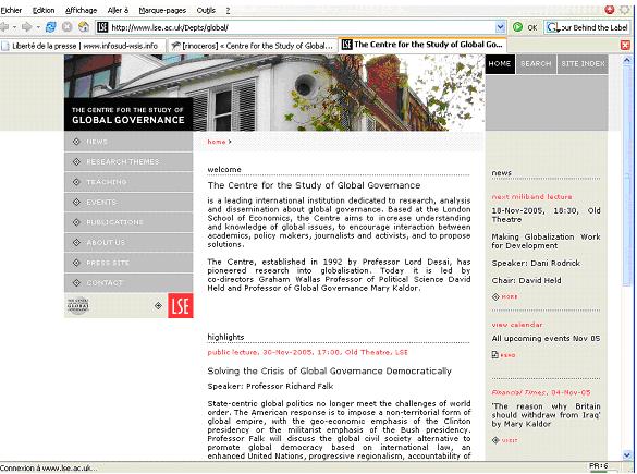 Le site du CSGG ne publie que quelques uns des travaux de recherche du centre et donne accès aux ressources en ligne (en anglais) sur le site de la London School of Economics.