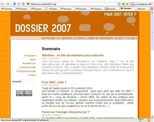 Voter Y est une initiative citoyenne lancée en novembre 2004 par notamment : Les Inrockuptibles, Mouvements, Mains d’ Oeuvres, Adels, Transversales, Le Passant Ordinaire, Forum de la gauche citoyenne ? "Y" est une personne fictive qui n’a d’autres ambitions que la dépersonnalisation du débat politique, sa restitution et/ou son appropriation par tous et toutes, une nouvelle vision du pouvoir rendu au collectif. Il s’agit de "parier sur l’énergie citoyenne par Y"...